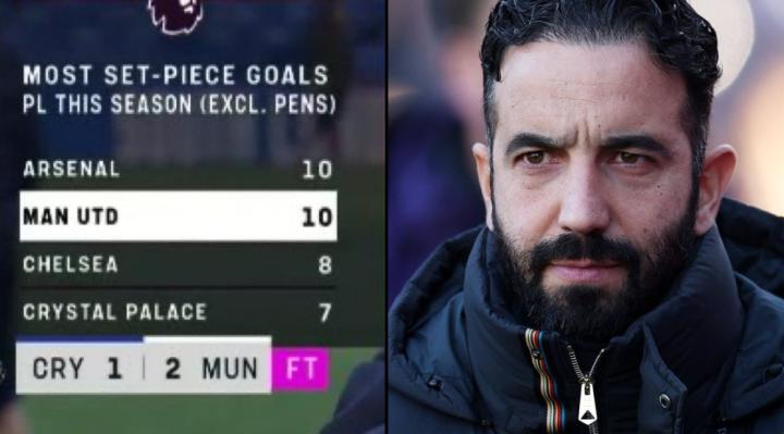 在今天晚上踢的英超第13轮比赛里,曼联去客场2-1赢了水晶宫,曼联那俩进球都是在定位球进攻的时候打进去的。这赛季到现在,曼联在英超里定位球进球(不算点球)都进了10个啦,跟阿森纳一样多,并列英超定位球进球数第一,乔-科尔说要给阿莫林“记个大功”。